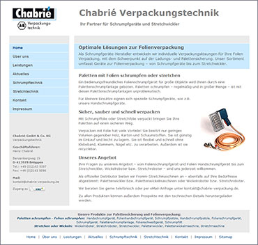 Die Homepage informiert über das Unternehmen und präsentiert auch einige